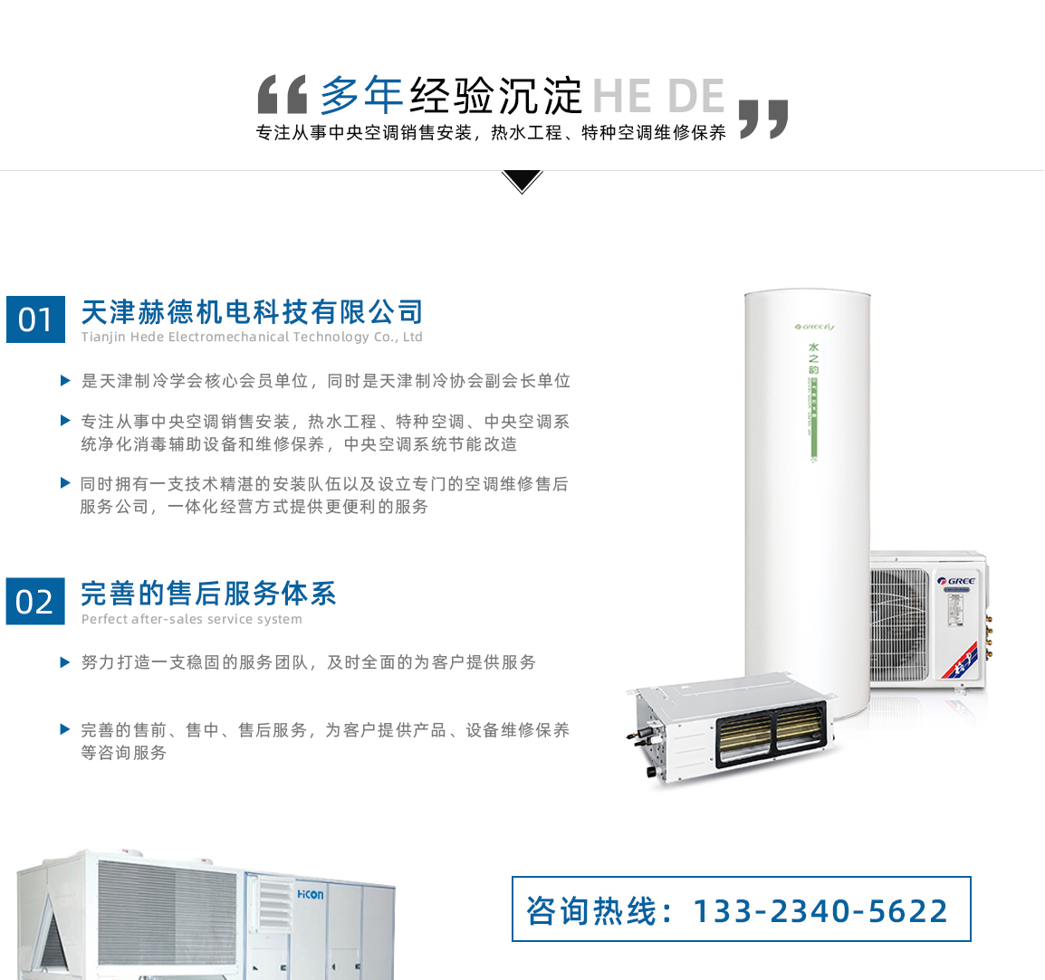 天津赫德機(jī)電科技有限公司是天津制冷學(xué)會(huì)會(huì)員單位,同時(shí)是天津制冷協(xié)會(huì)副會(huì)長單位,位于天津市海泰經(jīng)濟(jì)區(qū),依托天津制冷學(xué)會(huì)團(tuán)隊(duì)資源從事中央空調(diào)銷售安裝,熱水工程、特種空調(diào)、中央空調(diào)系統(tǒng)凈化消毒輔助設(shè)備和維修保養(yǎng),中央空調(diào)系統(tǒng)節(jié)能改造。赫德機(jī)電致力于綠色建筑暖通,低能耗解決用戶冷暖,全心全意為用戶負(fù)責(zé),讓大地更綠天空更藍(lán)。企業(yè)服務(wù)宗旨:做綠色建筑暖通,低能耗解決用戶冷暖,全心全意為用戶負(fù)責(zé),讓大地更綠天空更藍(lán)。